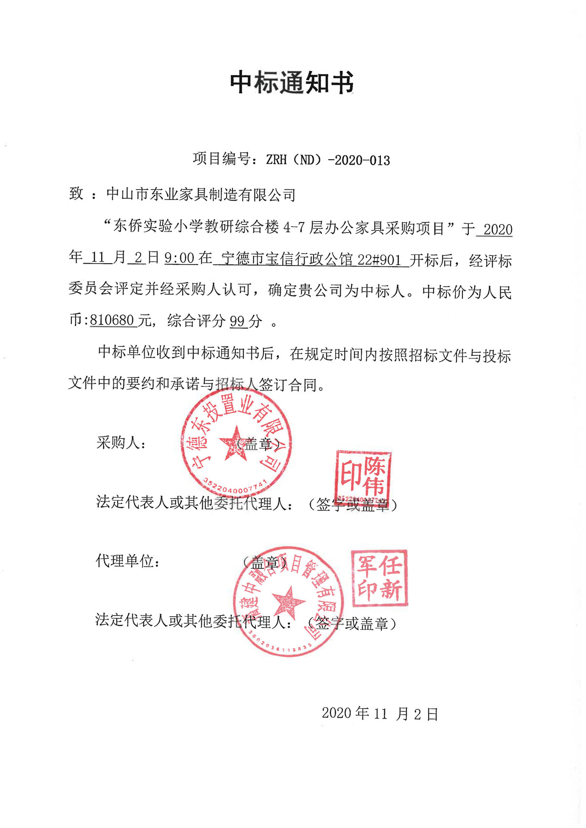 Office Furniture Procurement Project for Floors 4-7 of Dongqiao Experimental Primary School Teaching and Research Comprehensive Building, Ningde City, Fujian Province, amounting to 8106800 yuan