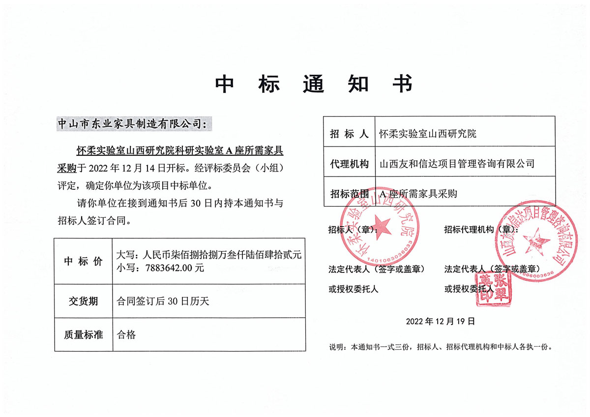 Purchase of 7.8836 million yuan worth of furniture for Building A of Huairou Laboratory Shanxi Research Institute Research Laboratory